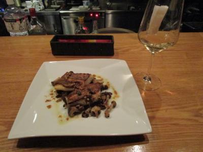 頼んだのは前菜盛り合わせ。白身魚のソテーのきのこソース。