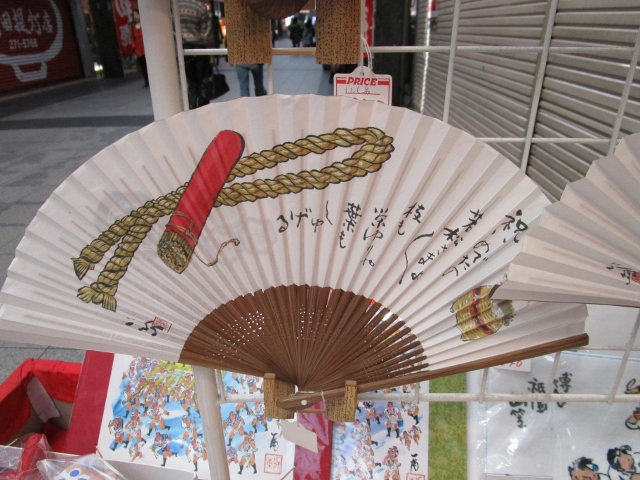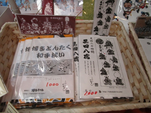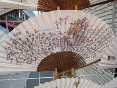 故西島伊三雄先生の描いた山笠の様子を描いた手ぬぐい、扇子などなど。
