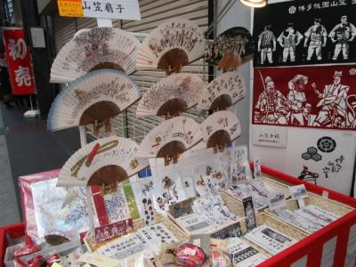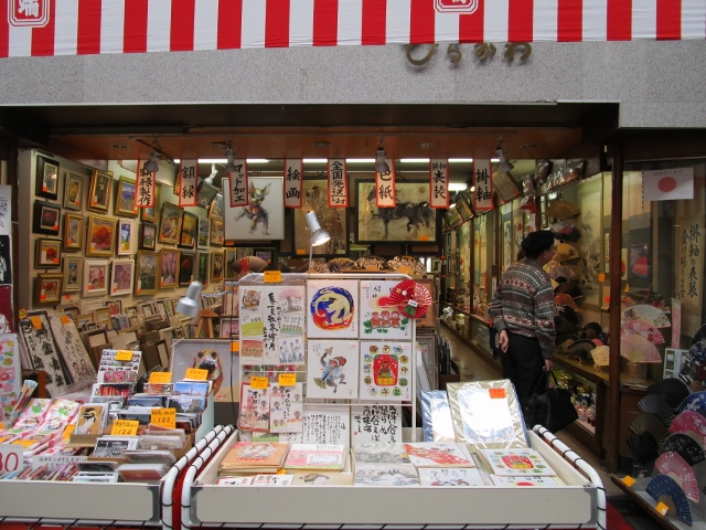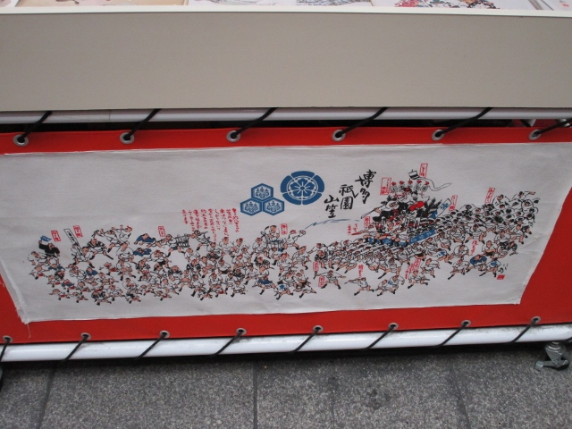 上川端にある額縁や額装のお店なのですが、掛け軸や日本画のほかに、店頭には山のように山笠関連のお土産が並んでいます。