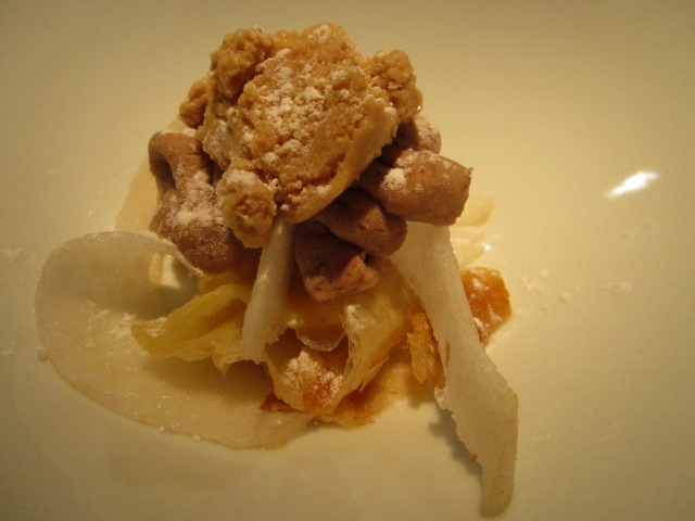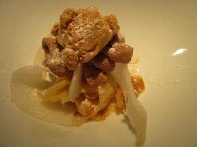 口の中に広がる芳香、歯ごたえ、絶妙なスパイスの加減。こんなにおいしいイベリコ豚は初めて。調理の仕方がいいのですね。カワハギのフリットも揚げ具合がよくとてもおいしかった。自然と笑みがこぼれてしまいます。