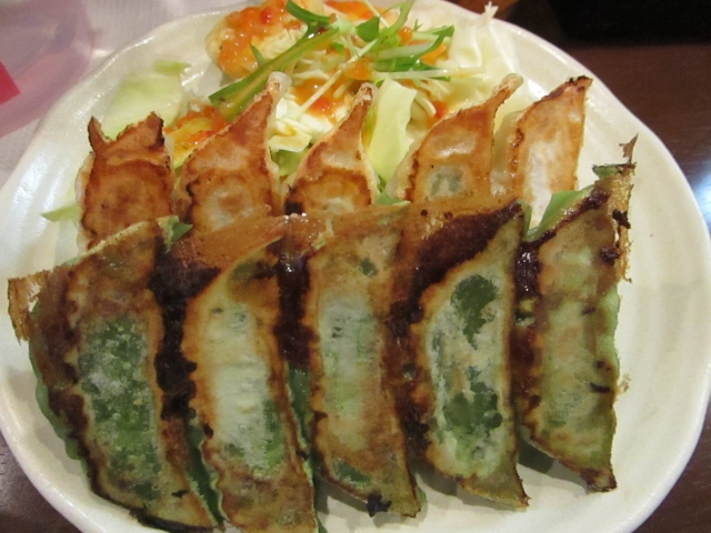 この時はにんにく有を頼みました。餃子は2種類5切れずつ。