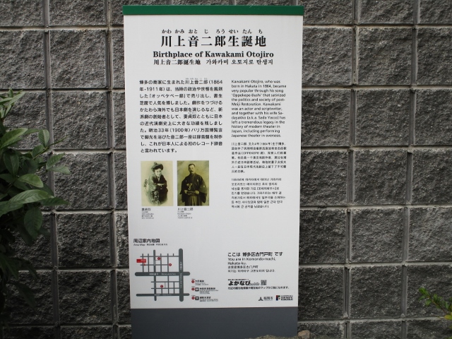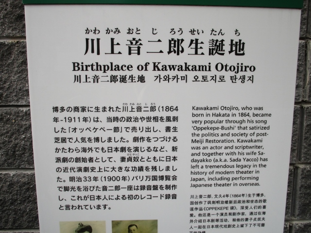 明治時代に世の中を風刺した歌、オッペケペー節を流行らせた川上音二郎の生誕地。