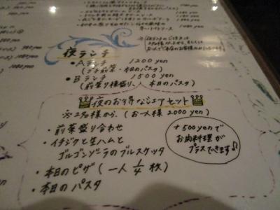 この時いただいたのは夜のランチ しっかり前菜+パスタで1500円