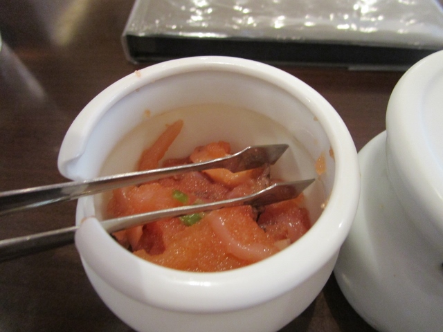 バーワン初体験。低温の油でゆっくりと加熱するという変わった料理の仕方。他では見たことが無い調理法です。