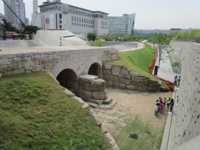 東大門歴史公園の中にある城郭と二間水門(イガンスムン)。