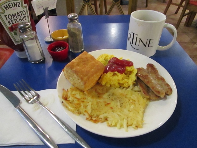 内容は選ぶことができますが、ビスキュイ、ソーセージ、スクランブルエッグ、ハッシュブラウンを頼みました。