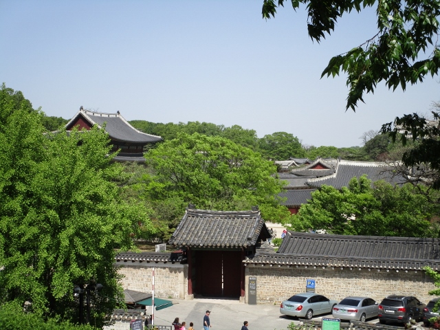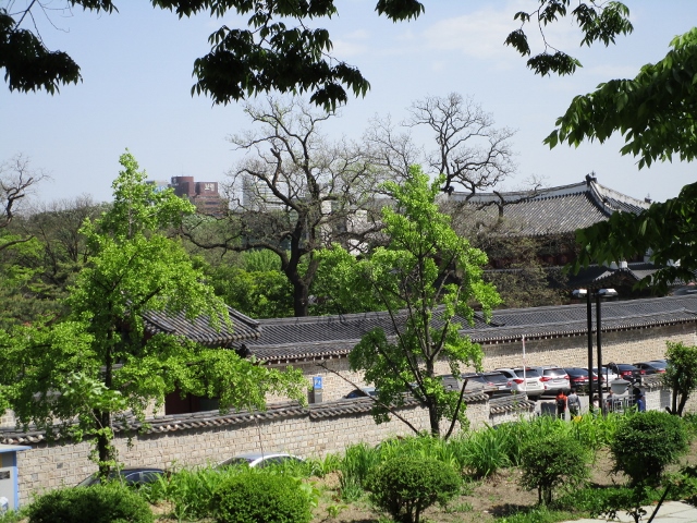昌徳宮の金虎門の近くと、大通り沿いに階段があり上に登ることができます。