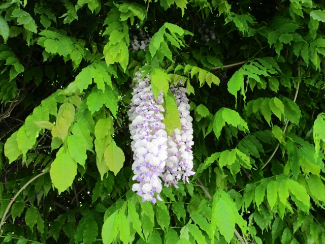 きれいな藤棚があり、お昼ご飯を食べてくつろいでいる人たちがいました。