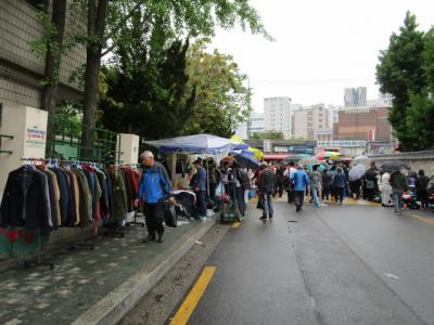 地下鉄1号線東廟前駅(トンミョアッ、Dongmyo) 3番出口を出て東廟の西側の道沿いにぎっしりと露店が並んでいます。