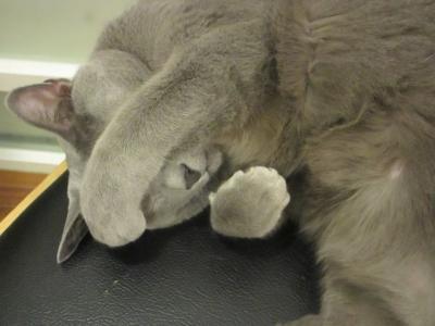 おやつとして、お魚のペーストを手の甲に塗ってもらい、それを猫さんたちになめてもらう・・というサービス込です。