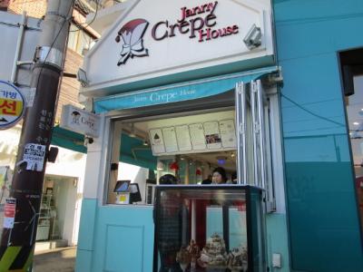 韓国でも流行っているクレープ。ハングルが全く分からないので、適当に指さしたらグヌーテラと呼ばれるペーストをたっぷり塗って、バナナなどの果物が入っているものでした。もうちょっとたくさん果物が入っていたらいいのになぁ。