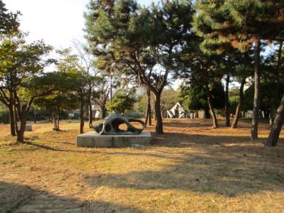 海雲台に住む地元の人がウォーキングに利用することが多いそうで、文化施設、芝生広場などがあり、野外彫刻公園にはさまざまなオブジェも置かれています。