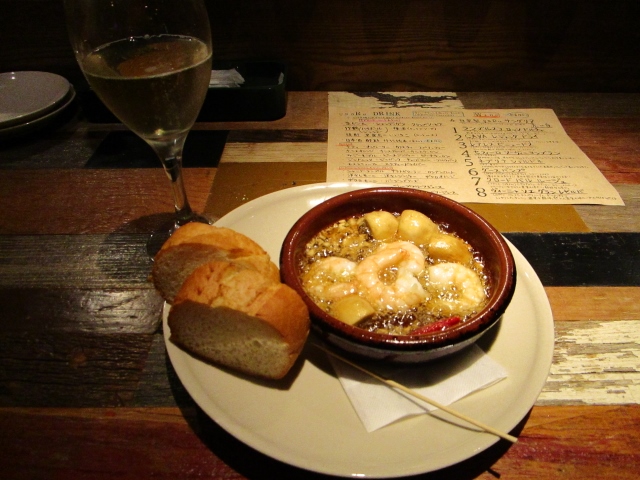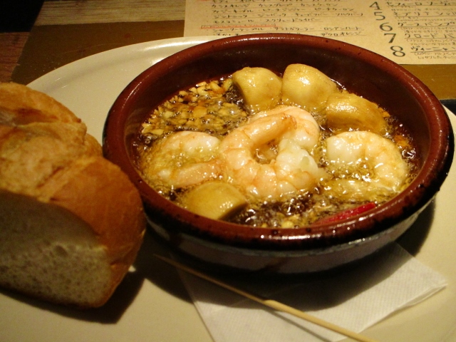 バーニャカウダを頼みました。ぷりぷりのエビとマッシュルーム、これにパンがついて500円という格安価格。