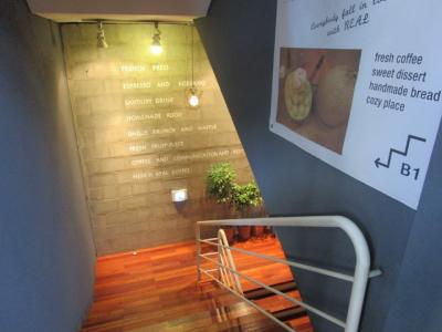 地下1階にあるのでちょっと見つけにくいのですが、看板があるので、これを目印にするといいと思います。