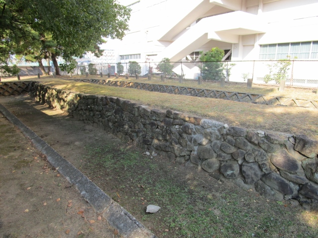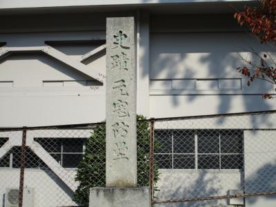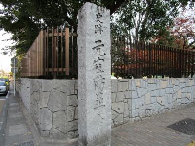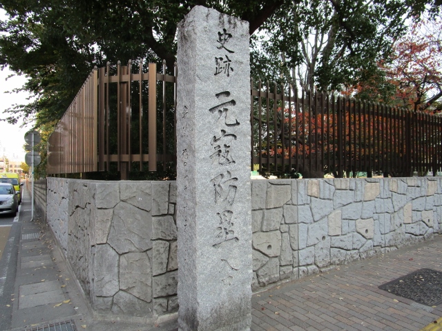 最寄のバス停は西鉄バス 防塁前バス停。ここを下りると目の前に修猷館高校が見えますが、その左側に元寇防塁入口の石碑が立っています。