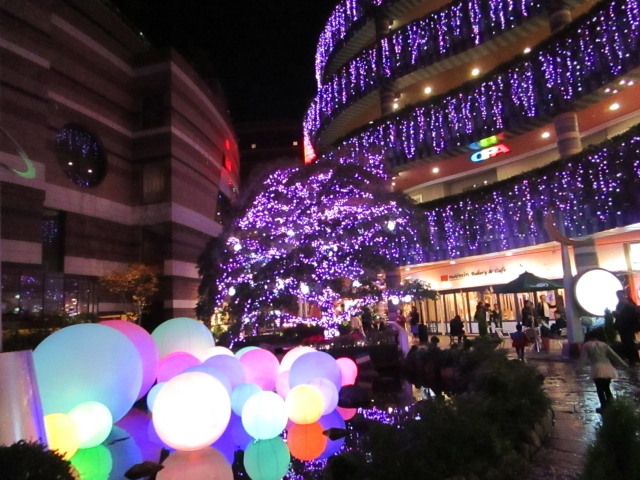 もともとキャナルシティは夜はきれいにライトアップされているのですが、この時期は3Dイルミネーションを中心に、かわいらしいボールタイプのイルミネーションなどが追加されてより豪華になります。- 旅行時期