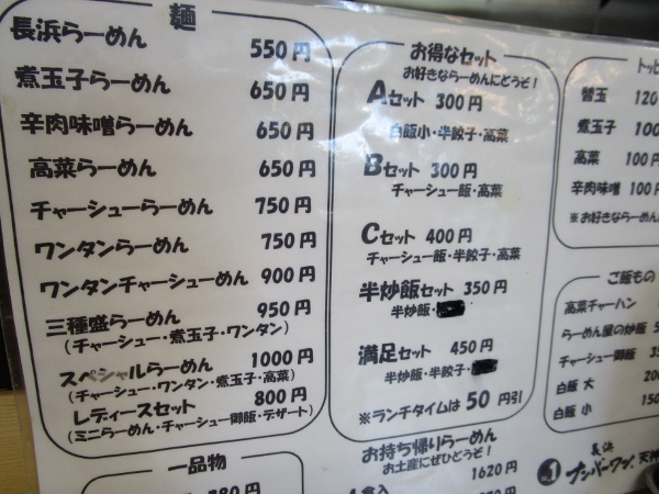 ラーメン550円のほかに、辛肉味噌ラーメン650円が人気メニュー。- 旅行時期