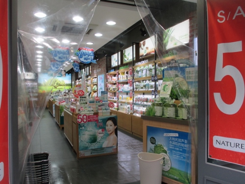 このあたり、化粧品を売るお店が集中しています。