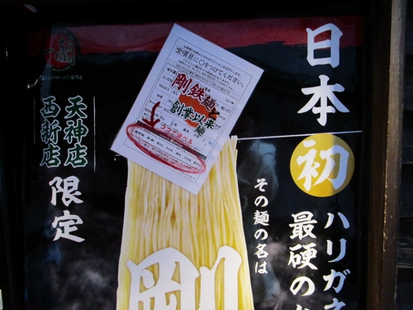 ここには西新店と2店舗でしか実施していない茹で加減、剛鉄というのがあって、食券を買う時に選びます。