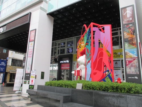 正面にあるゆるキャラのシロクマが目印です。ソウルの弘大や光州など全国展開しているショッピングモールですが、釜山に進出してきたのは2014年3月。