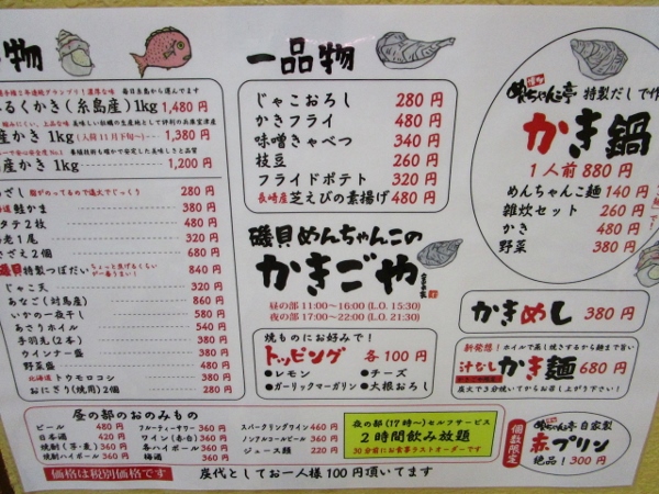 糸島産のみるく牡蠣は1?1480円。対馬産のアナゴは860円。