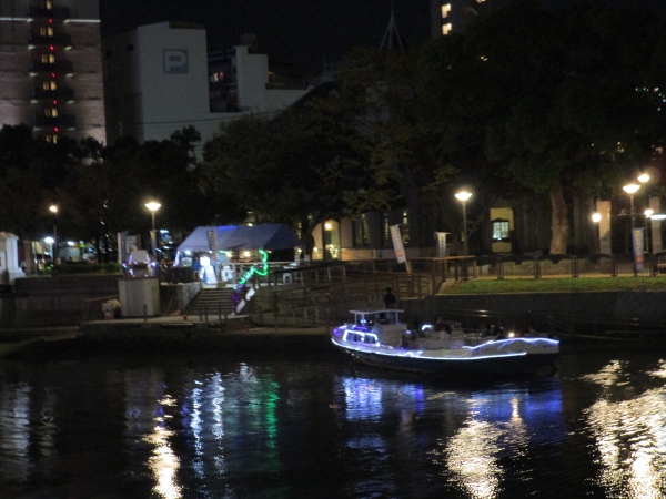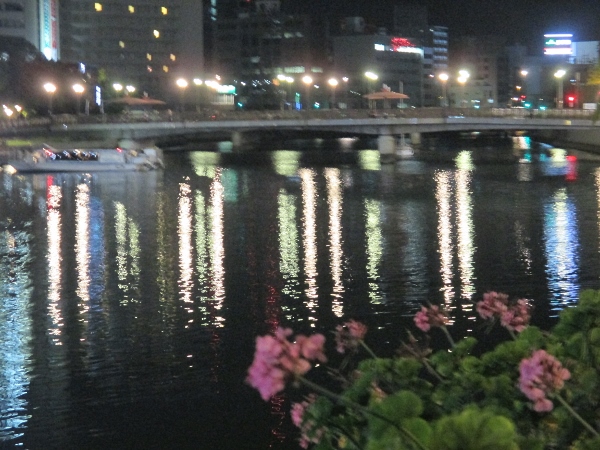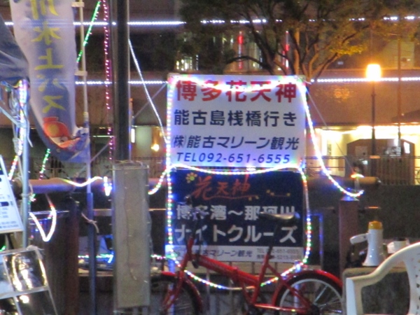 この橋を渡って中洲側の清流公園では7~8月の土曜日、10月~11月の土曜日「博多千年夜市」が開かれます。