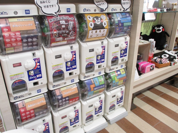 くまもんグッズのガチャガチャも楽しいです。