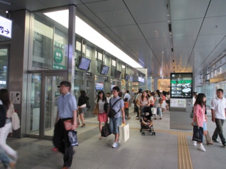 新幹線の乗車口に近い筑紫口から出て左側にあるビルの1階にあります。