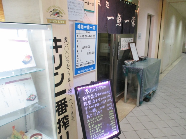 福岡市の市場会館は、1階に福魚食堂、まさ味、おきよ食堂、魚辰、魚がし、一魚一栄などの食事処、長浜・海のおみやげセンター 鮮座が集まっています。