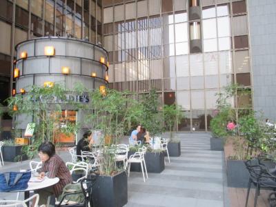 福岡銀行本店の建物のパティオ部分にあるとても解放感があって、気分がいいカフェです。気候のいい秋、春は最高です。