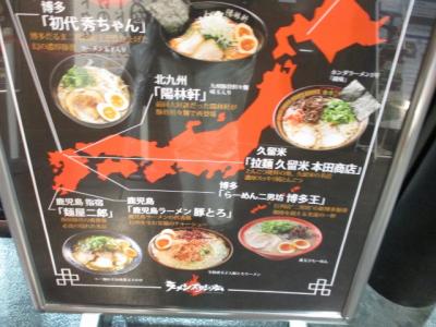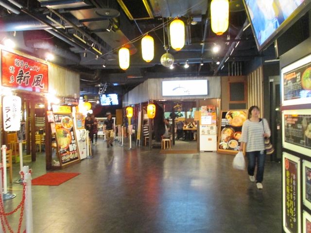 2014年10月現在入っているのは初代秀ちゃん(こってり系豚骨)、麺屋二郎、豚トロ、博多王、久留米本田商店、黒マーユの博多新風、サッポロラーメン大地、北九州ラーメンの陽林軒。