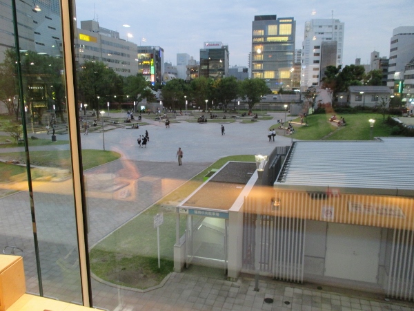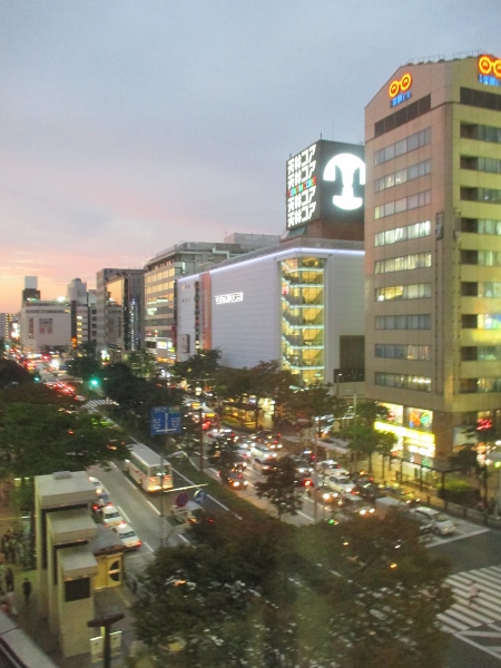 ソラリアプラザの北の方からバスセンターにアクセスする途中にある窓からは、天神のきれいな景色がのぞけますよ。