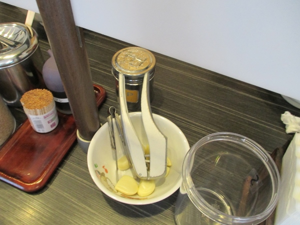 好みで生ニンニク、ゴマ、紅ショウガをトッピングします。