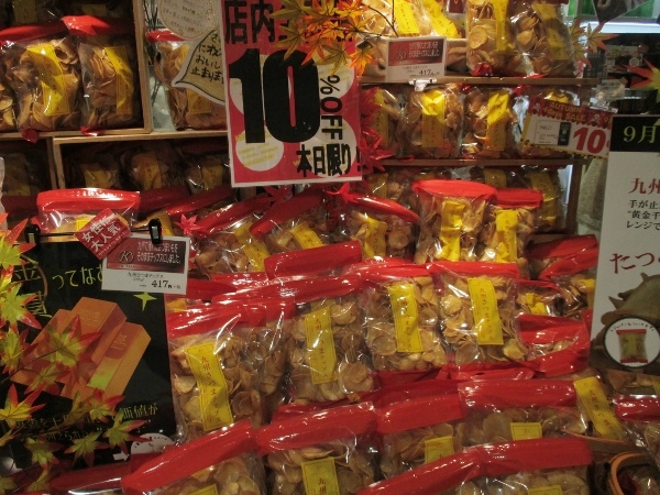 店先にはいつもお買い得の品々が並べられていて、試食コーナーも楽しいです。