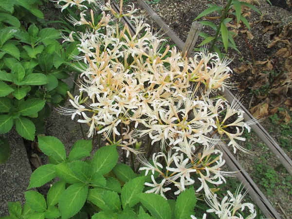 萩の花、フジバカマ、女郎花(オミナエシ)、金トラノオ、千日小菊、段菊、リコリス(彼岸花に似ています)などが咲いていました。