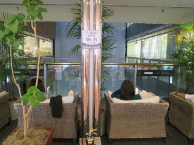 無料のWi−Fiスペースは、ゆったりしたソファや肘掛椅子があって、とてもリラックス。たまに、寝込んでいる人を見かけます(笑)