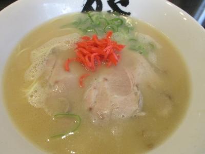 あっさり系の豚骨スープで、麺は細麺。チャーシューもちゃんと2枚入っていました。