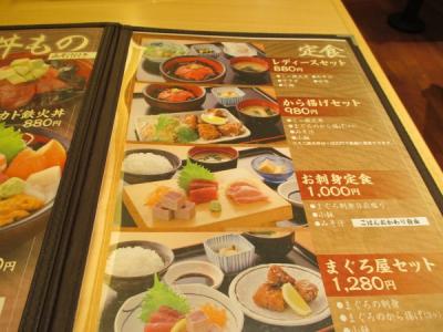から揚げセット980円 お刺身セットは1000円 マグロ屋セットは1280円です。- 旅行時期