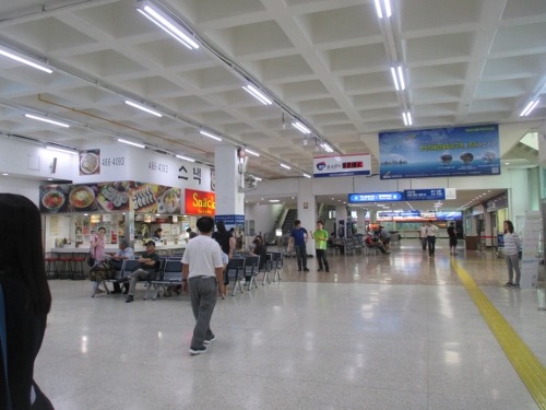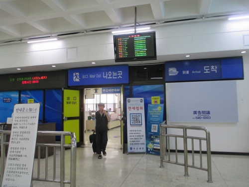 ビートルの着く釜山国際ターミナルからは徒歩10分ですが、釜山駅までのシャトル(10000W 現金支払い時)は中央洞にも止まります。