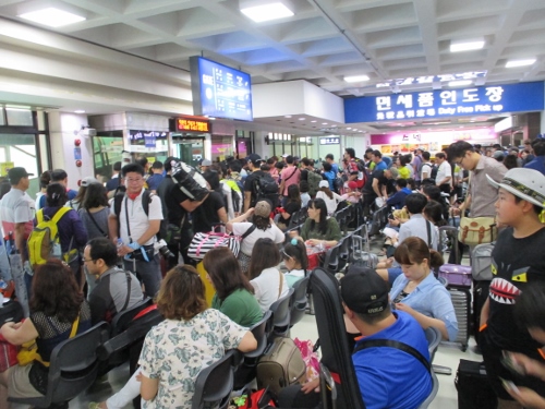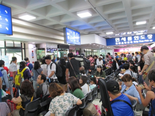 出発ゲートの近くにあり、2014年の8月15日は韓国の人にとっては3連休とあって、ものすごく込み合っていました。