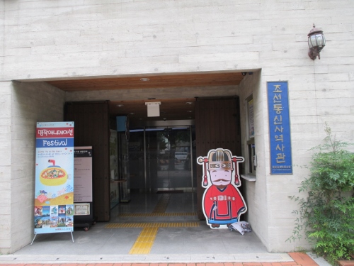 金色の朝鮮通信史の銅像がありますからこれが目印。