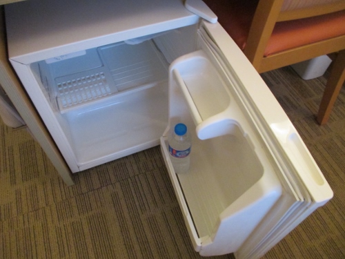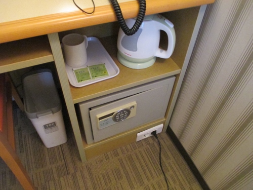 部屋は狭いけど、特大スーツケースを広げるくらいのスペースはあります。