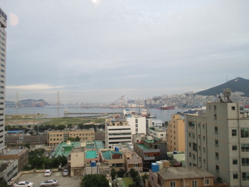 何よりうれしかったのが、窓から釜山の港が見えること。