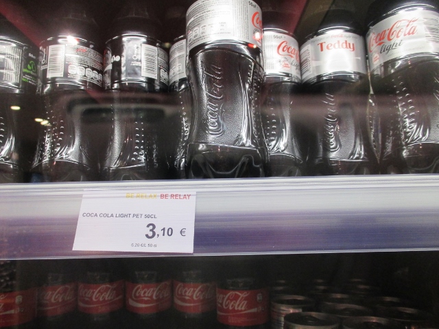 市内のスーパー並みとは言えませんが、ミネラルウォーターで3ユーロ弱、コカコーラが3.1ユーロ・・・・やっぱり空港値段なんですけど、先に12ユーロなんてすごい値段のミネラルウォーターを見た後では安いと感じました(笑)