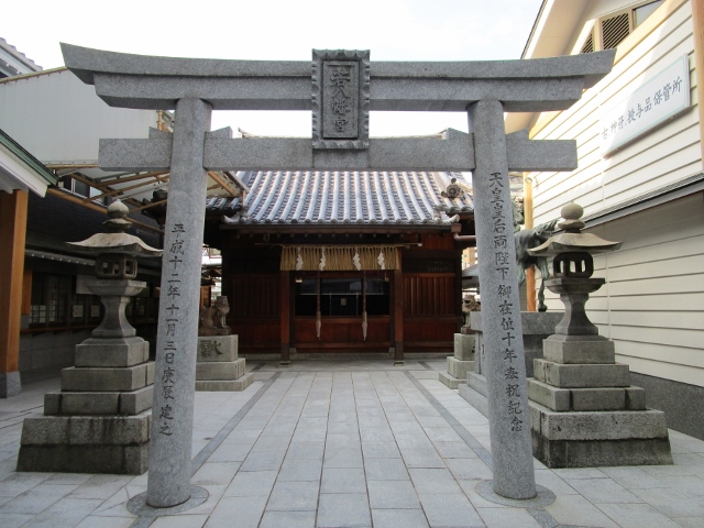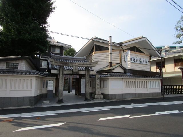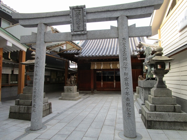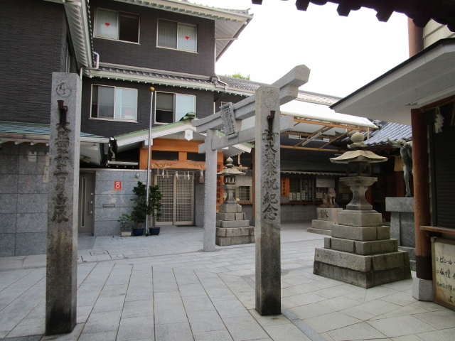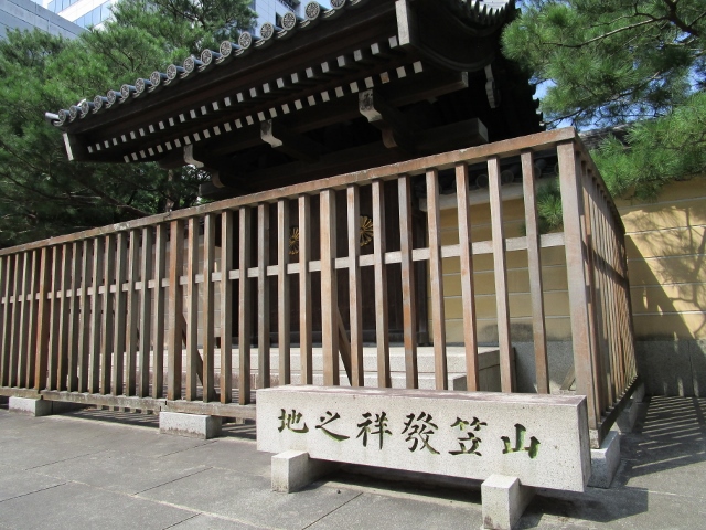 出入りができないようになっている門の前には山笠発祥の地の石碑があります。