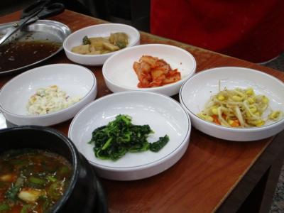テンジャンチゲやたくさんの副菜がついてきました。テンションあがりますね~~。