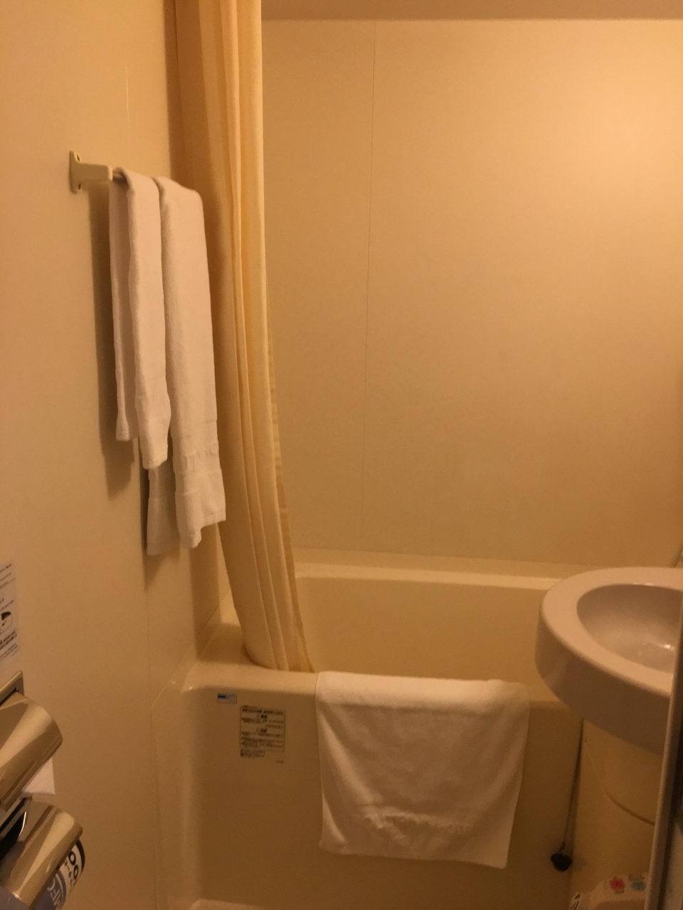 客室もリノベーションされ清潔です。ただバスルームに入った瞬間、カビ臭さを感じたのが唯一の欠点でした。ユニットバスは旧式でここまでリニューアルの手が回らなかったようです。