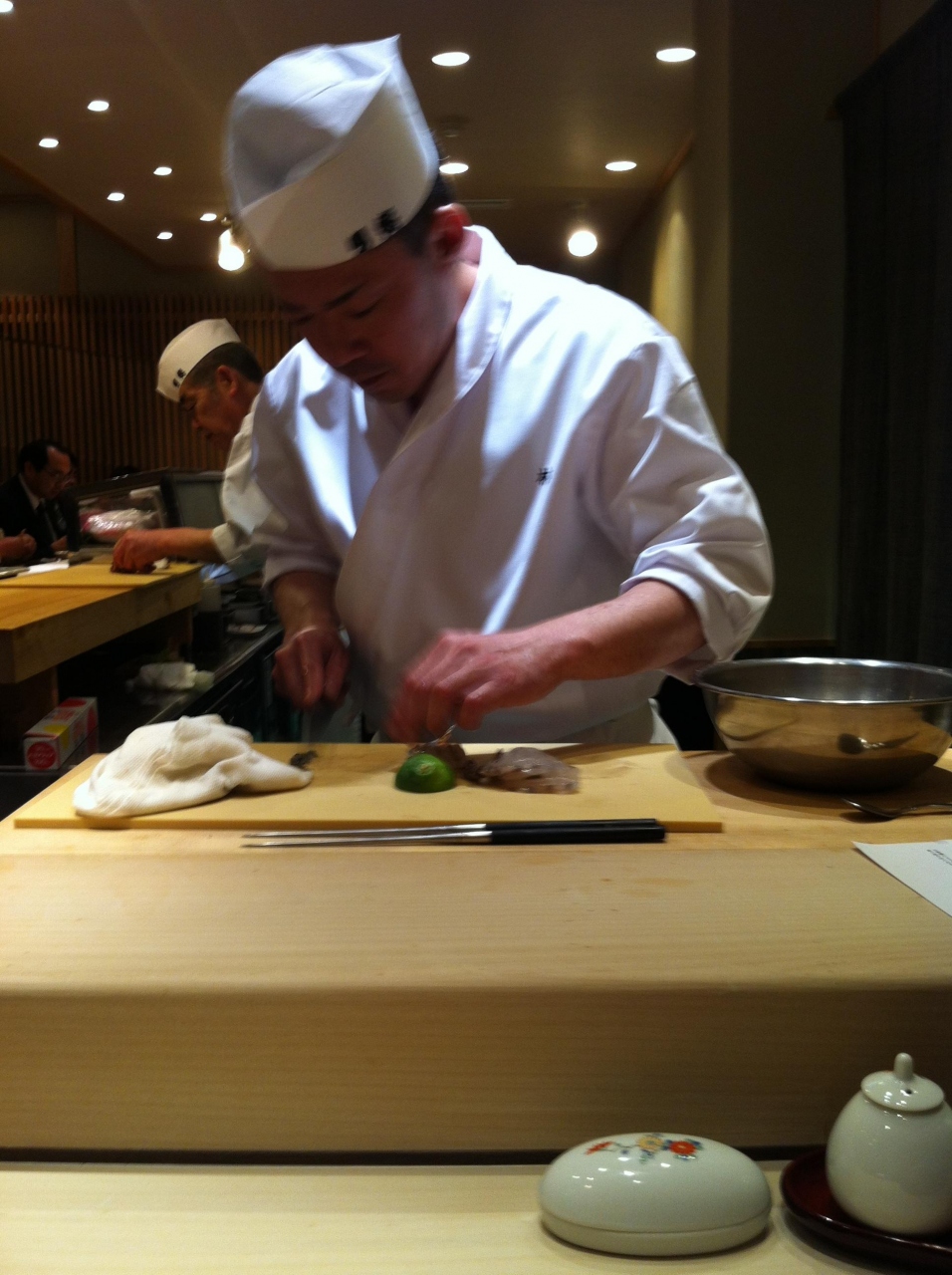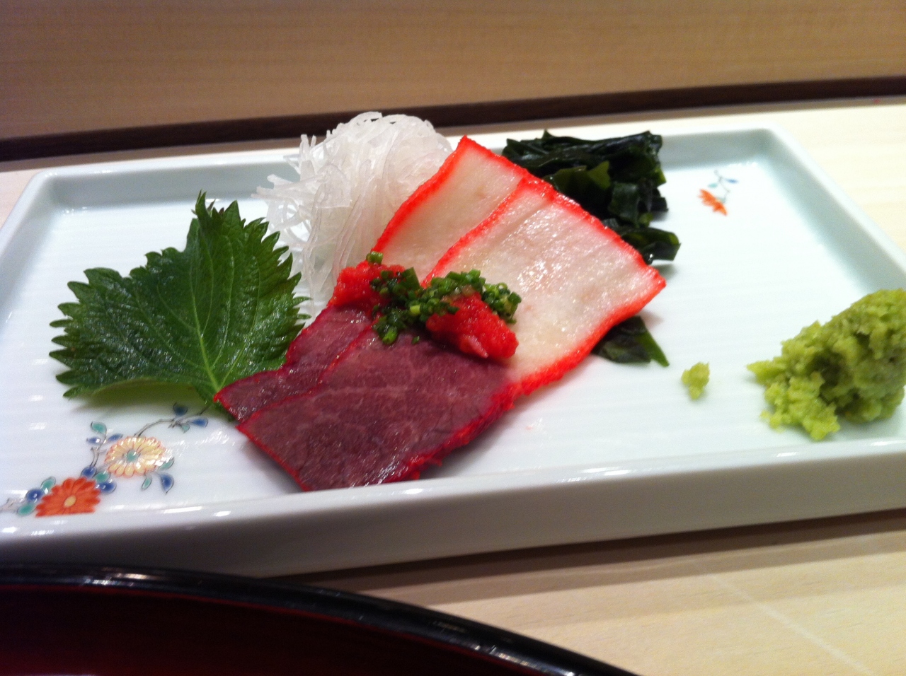 カウンターで社長の明徳氏の包丁さばきを眺めながら、その時々の旬の魚介を勧められるままにいただきます。出されるものは全て極上品の極上部位です。運が良ければ希少なくじらベーコンなどもいただくことができます。勘定はしたことがないので分かりませんが、東京なら間違いなく一人数万円はする内容です。