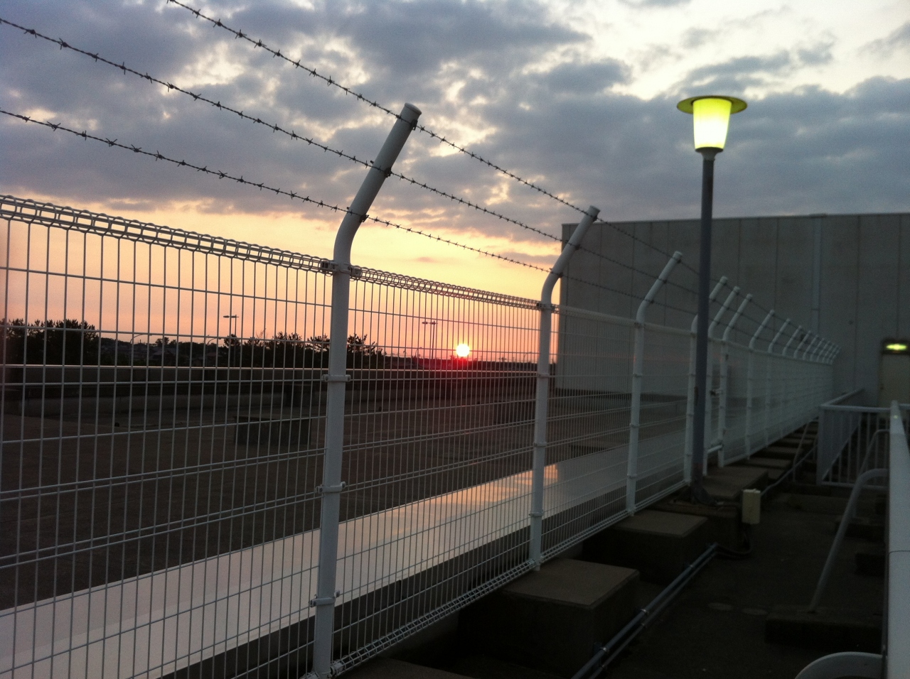 ある時、東京に戻る便まで少し時間があったので展望デッキに上がってみました。旅客機や自衛隊機などが見える人気スポットですが、その時はたまたま日没時、日本海に沈む夕陽がことさら美しく見えました。太平洋側に住む者にはなかなかお目にかかれない光景です。思わず写真に収めてしまいました。