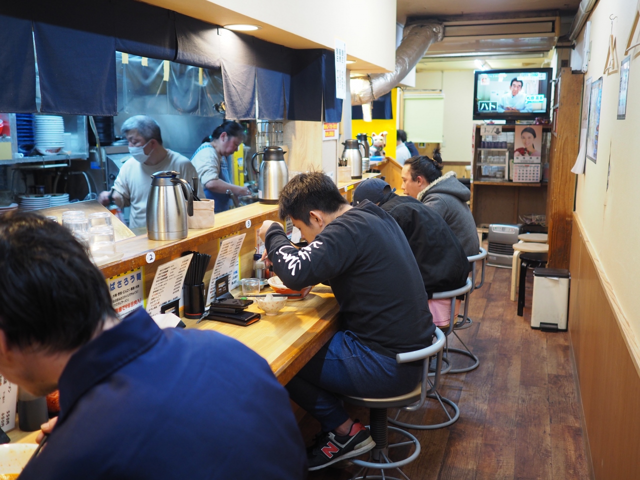 店に入ったのは午後7時頃、すでにほぼ満席でしたがカウンターに運良く座れました。その後も若い人たちが入れ替わり立ち替わり来店し、常に満席状態です。